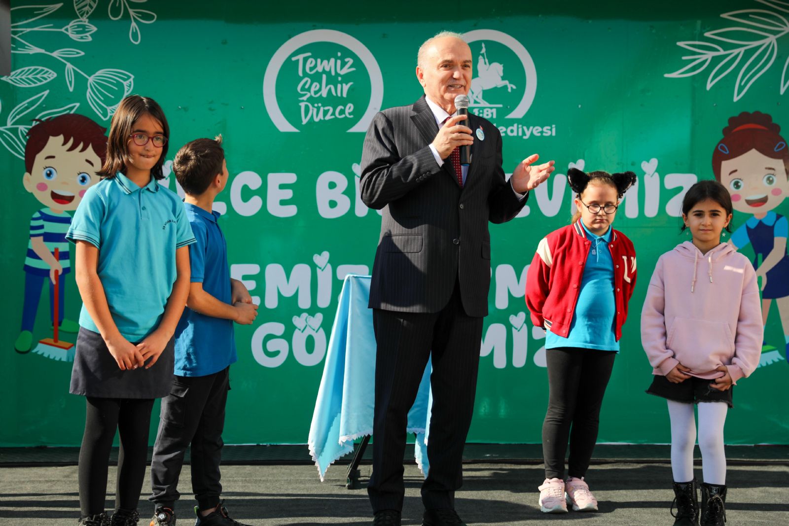 Düzce Belediyesi koordinasyonunda tüm kurum, kuruluş ve STK’ların da desteği ile sürdürülen “Temiz Şehir Düzce” kampanyası kapsamında okul buluşmaları devam ediyor. Düzce Belediye Başkanı Dr. Faruk Özlü, Düzce İl Milli Eğitim Müdürü Gülşen Özer ile Düzceli Tiyatro ve Sinema sanatçısı Nurullah Çelebi’nin 23 Nisan İlkokulu’na yaptığı ziyaret ile renklenen kampanya kapsamında öğrencilerle birlikte birçok etkinlik düzenlendi, çevre temizliği ve doğanın korunması konularında farkındalık oluşturuldu.