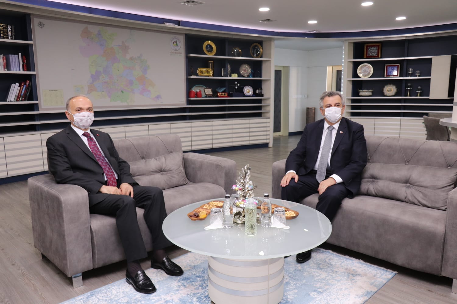 Düzce Belediye Başkanı Dr. Faruk Özlü, bir dizi istişare toplantıları için Düzce’ye gelen Sanayi ve Teknoloji Bakan Yardımcısı Hasan Büyükdede’yi makamında ağırladı. İkili, Düzce’nin sanayi altyapısı ve yatırımcı olanaklarının iyileştirilmesi konusunu görüştü.