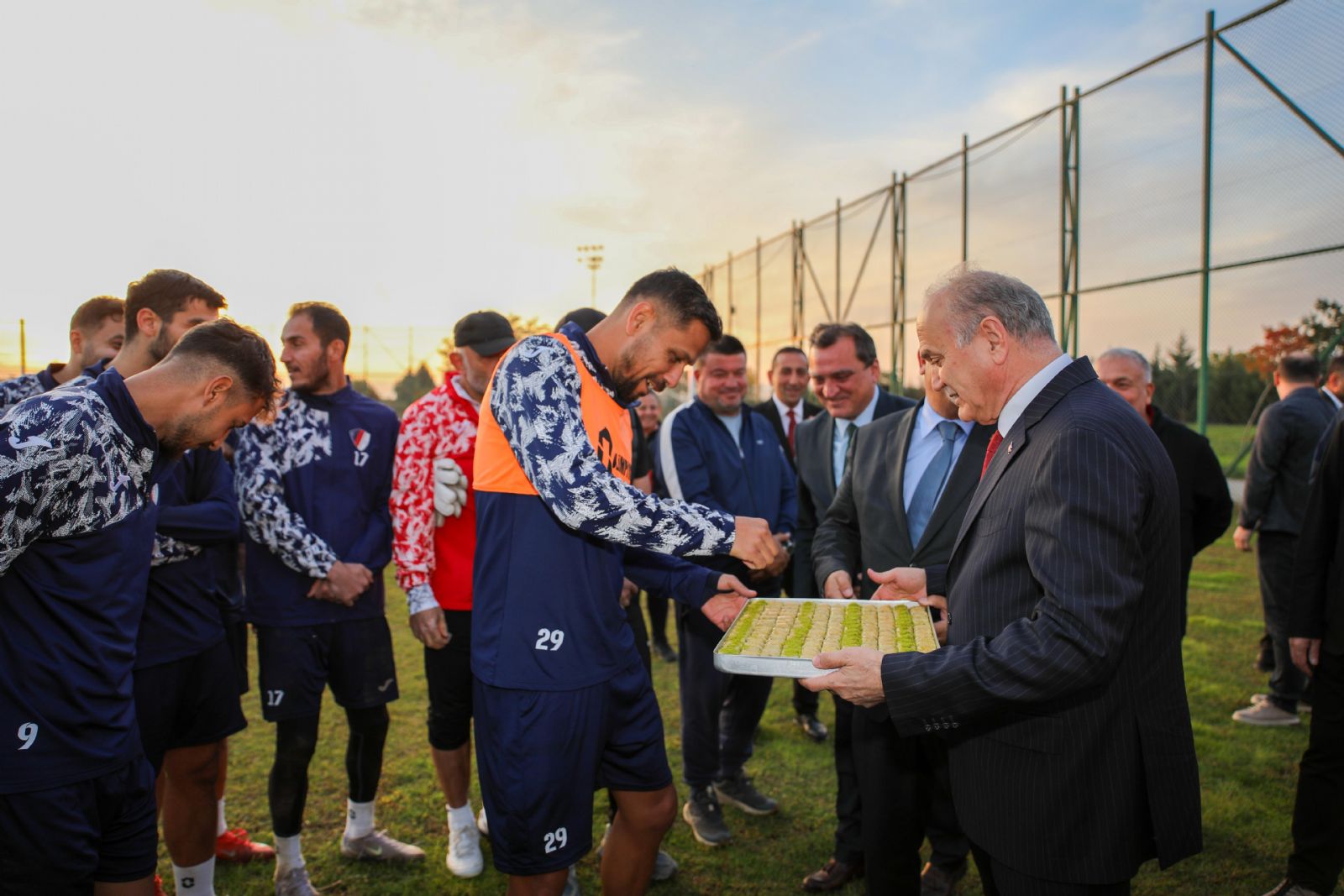 Düzce Belediye Başkanı Dr. Faruk Özlü, namağlup unvanını koruyan Düzcespor’u antrenmanda ziyaret ederek futbolculara baklava ikram etti, galibiyet halinde prim sözü verdi.