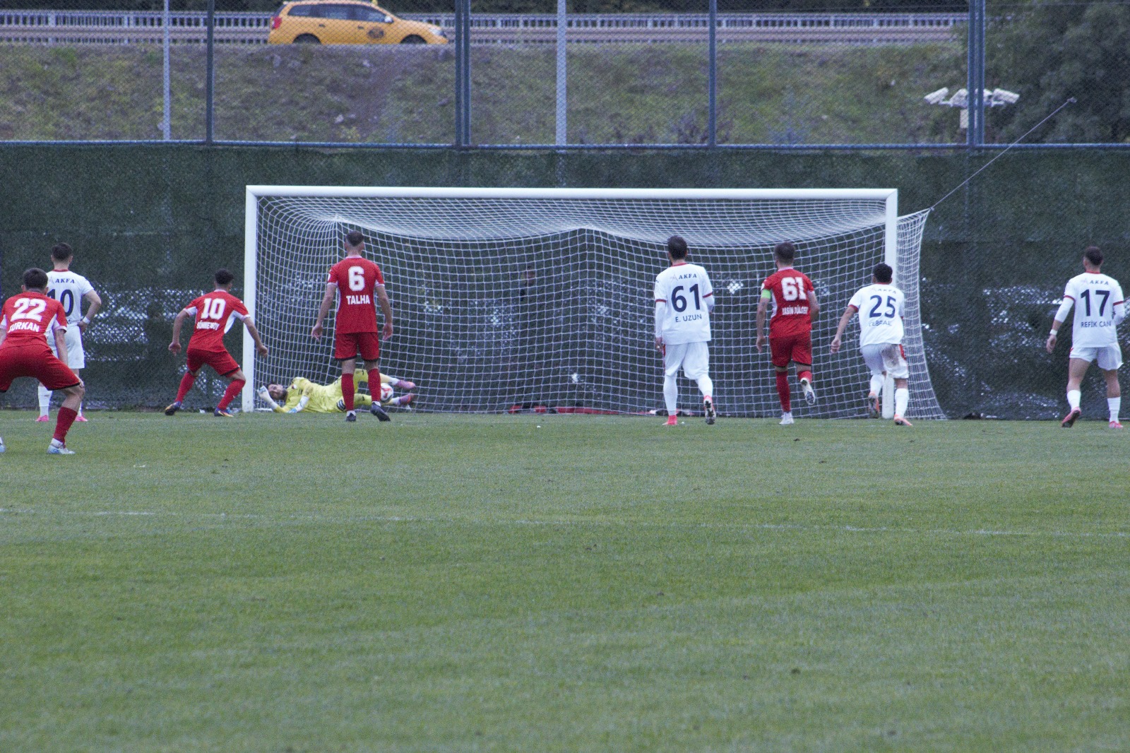 dak:72-Düzce Cam Düzcespor futbolcusu Enes Can Özdemir,rakiplerini akarde ederek ceza sahasına topa yaptığı vuruşu avuta çıktı.