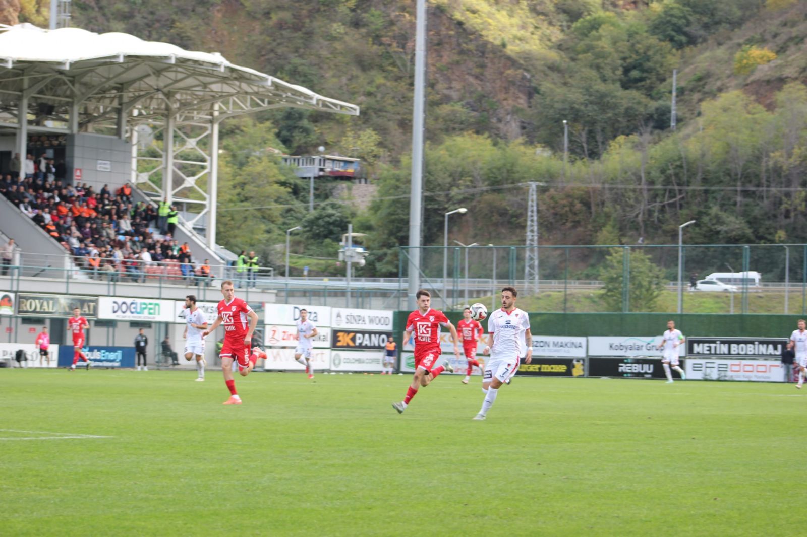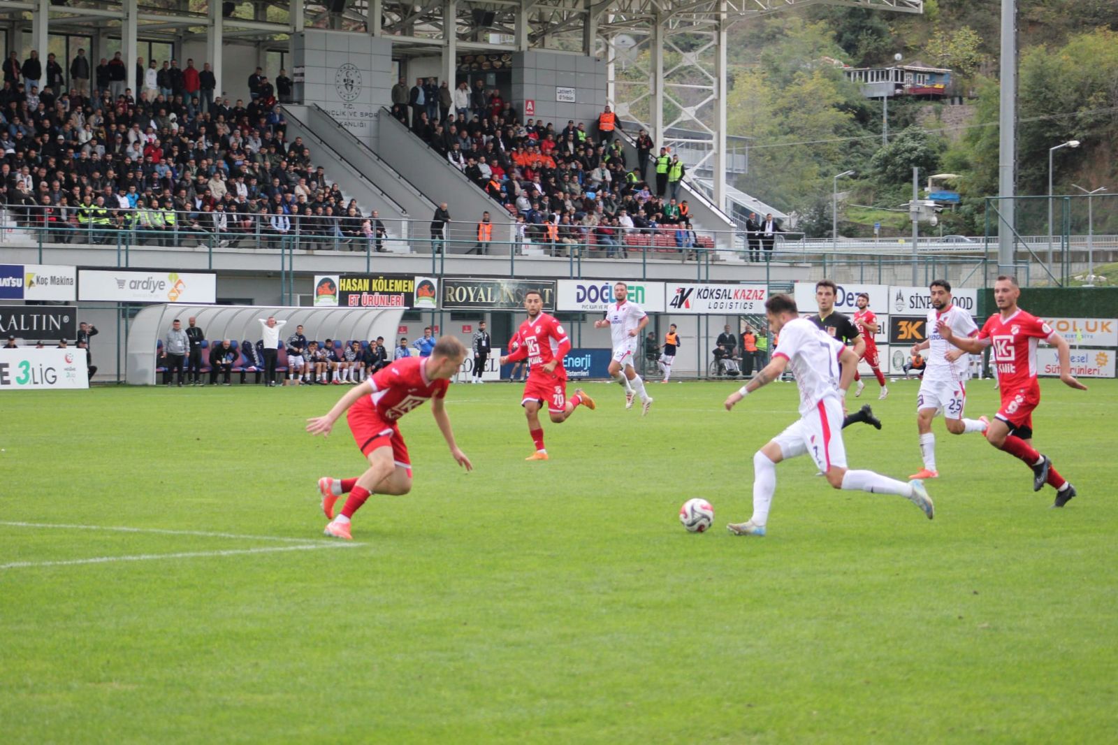 dak:48-Düzce Cam Düzcespor futbolcusu Enes Can Özdemir’in ortasında İsa Nalbant’ın yaptığı kafa vuruşundan yararlanamadı;