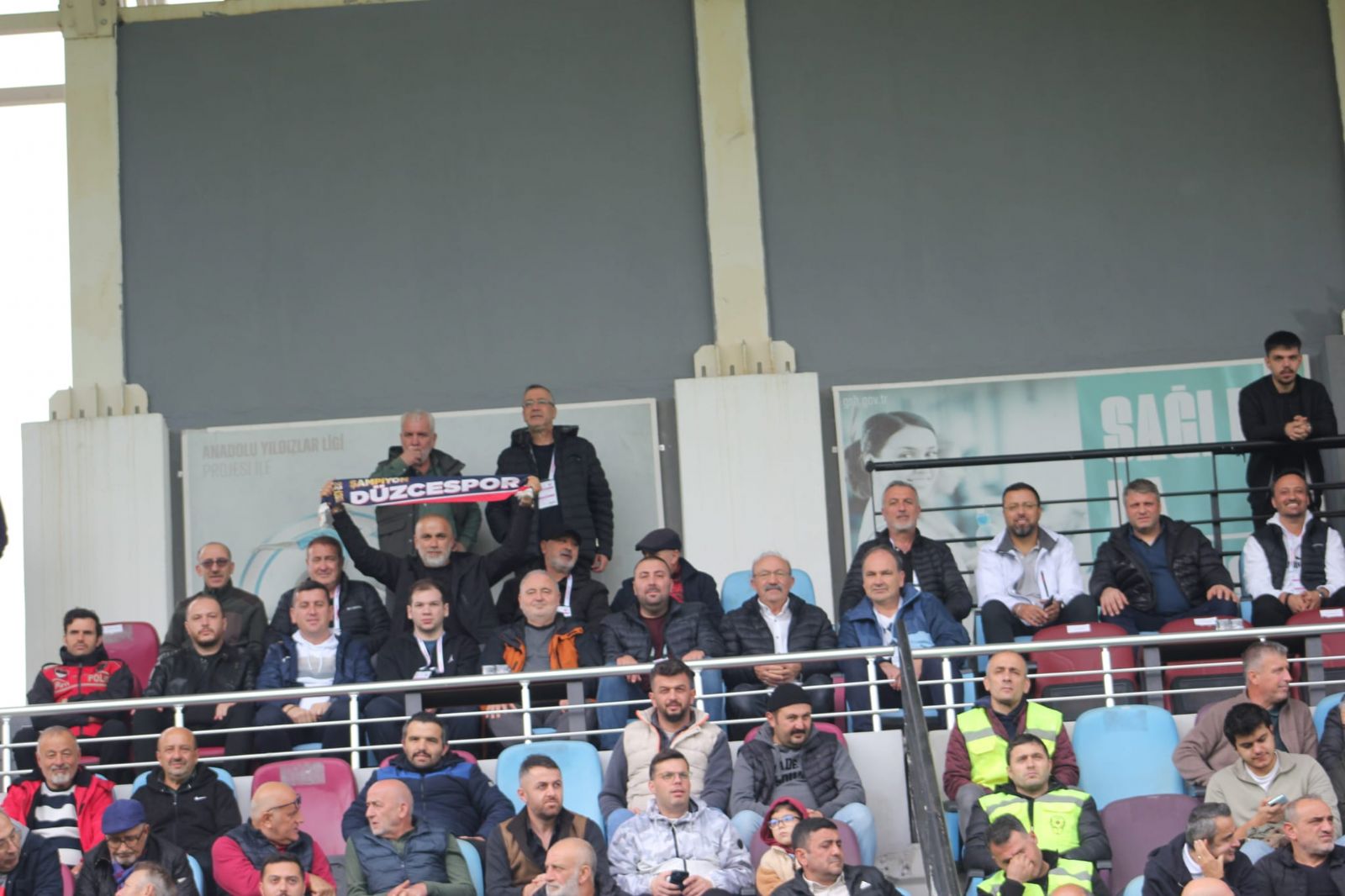 Karşılaşmada Düzce Cam Düzce spor Kulüp Başkanı Mehmet Saygun yönetim kurulu üyeleri Trabzon deplasmanında yalnız bırakmadılar.