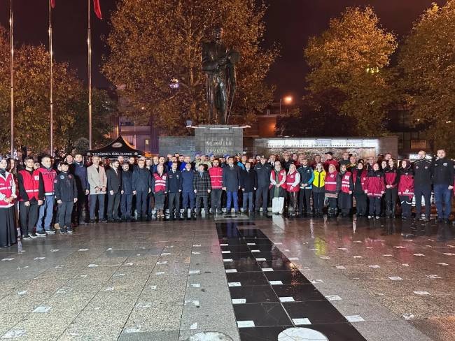 Depremin gerçekleştiği 18.57’de Anıtpark Meydanı’nda ekipler, sirenler çalarak Düzce depreminde yaşamını yitirenleri andı.