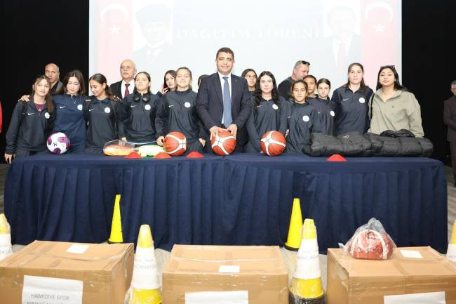Programda 52 amatör futbol takımı için 643 bin lira değerinde futbol topu, antrenman hunisi, idman setleri ile antrenman yelekleri dağıtıldı.