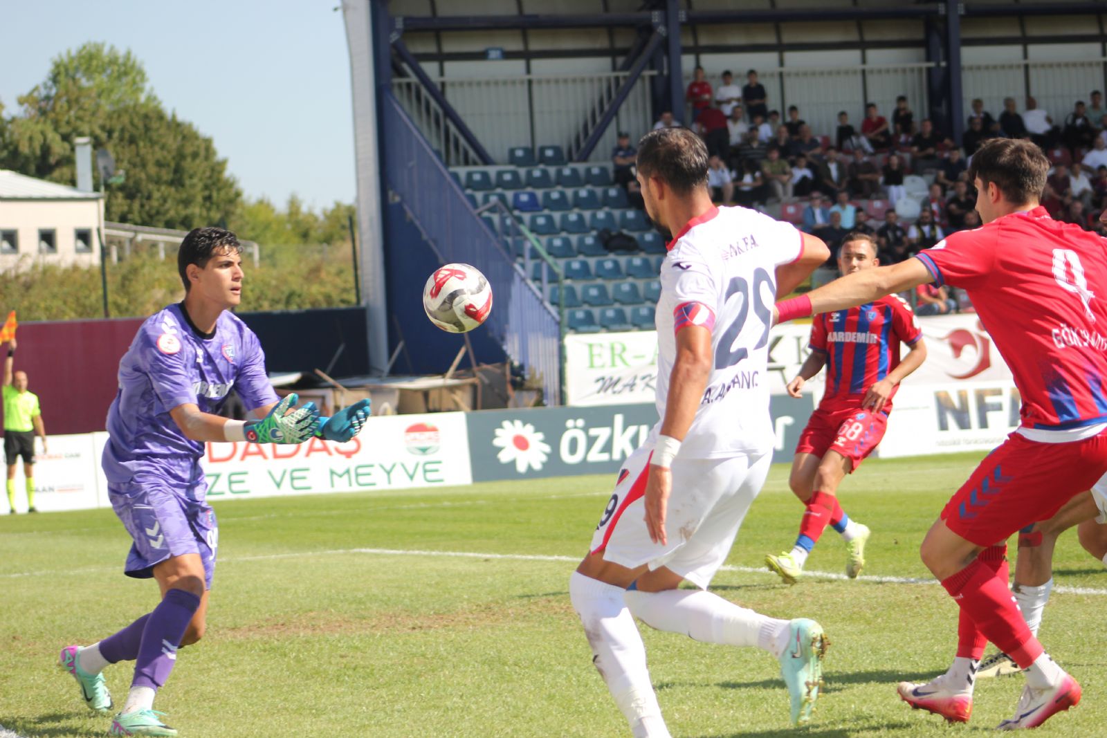 90+6 Karşılaşmanın uzatma bölümünde orta sahada topla buluşan Düzce Cam Düzcespor futbolcusu Ufuk Birdal peşine taktığı rakip futbolcuların durduramaya çalışmalarına rağmen kaleci Melih Aktaşıda akarte ederek topu ağlarla buluşturup skoru ve maçın sonucunu 4-2 olarak belirledi.