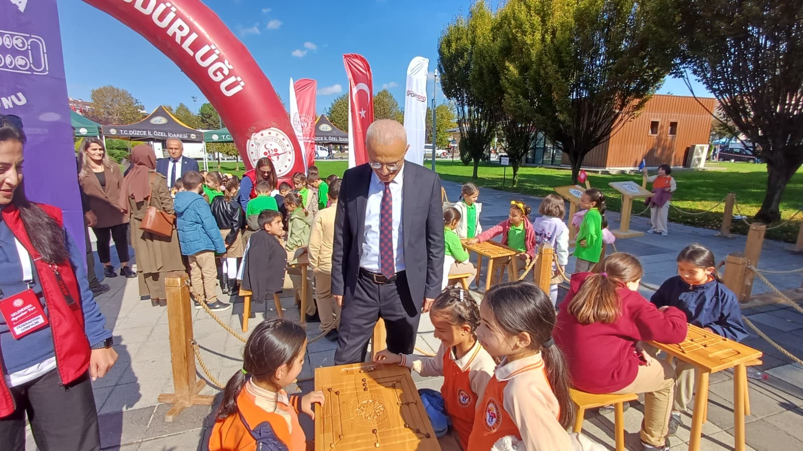 Düzce Valiliği Kampüsü – Havuzlu Bahçe'de düzenlenen etkinlik alanını ziyaret eden Düzce Gençlik ve Spor İl Müdürü Zekeriya Arslantürk, çocuklar ve gençlerle bir araya gelerek oyunlara katıldı, geleneksel sporların önemine dikkat çekti.