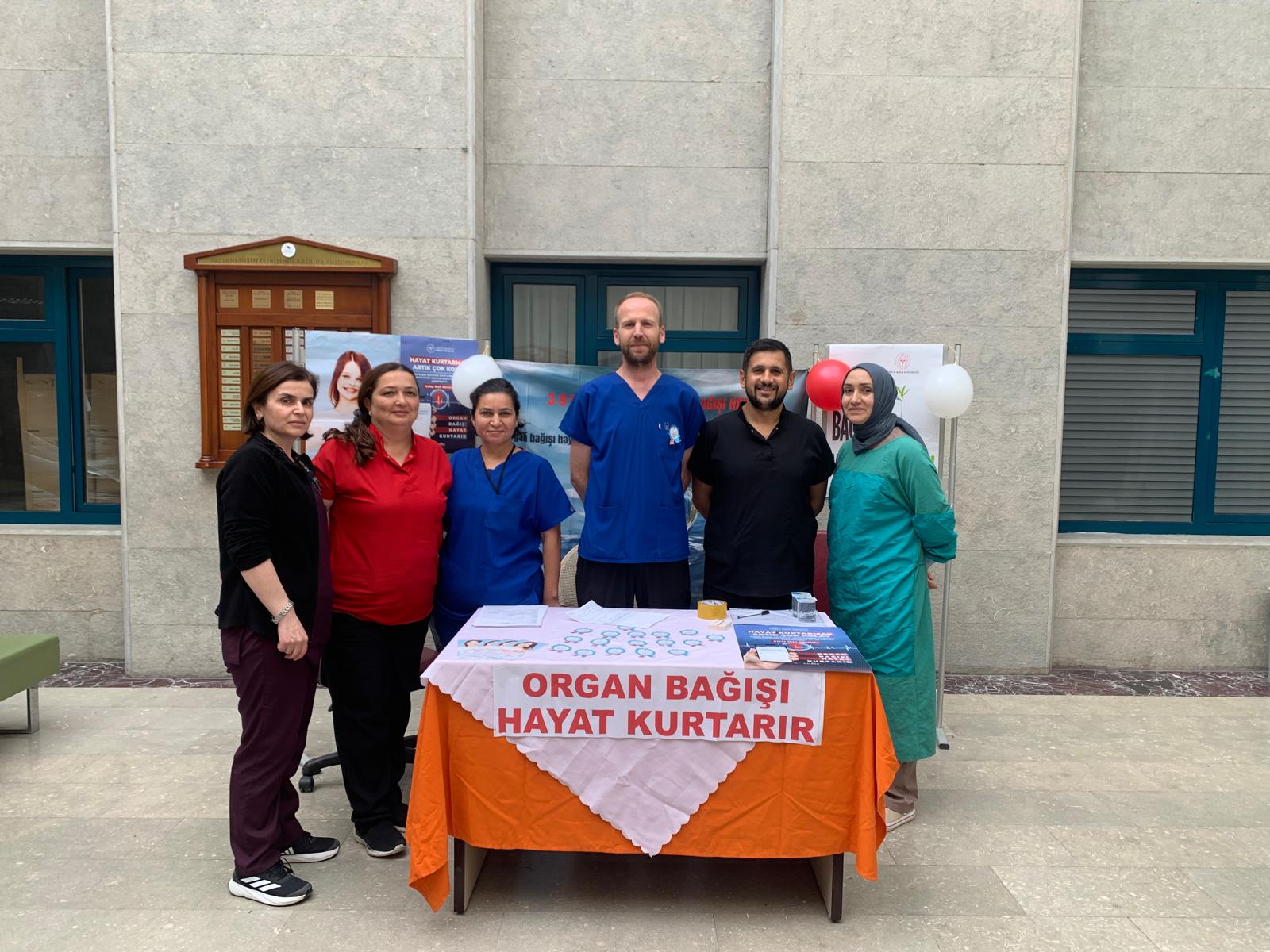 Düzce Üniversitesi Tıp Fakültesi Hastanesi’nde açılan organ bağışı farkındalık standını; Başhekim Yardımcısı Dr. Öğr. Üyesi Şükriye Özde, Organ ve Doku Bağış Birimi Koordinatörü Doç. Dr. İlknur Suidiye Yorulmaz, Başhemşire Nursel Ulusoy Koç, Hastane müdür ve müdür yardımcıları ile sağlık çalışanları ziyaret ederek destek verdi.